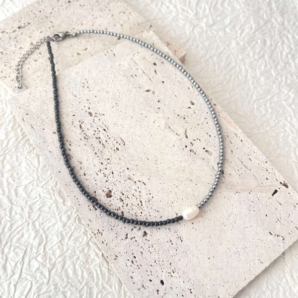Κολιέ Με Αιματίτες Και Ατσάλινο στοιχείο Σταγόνα