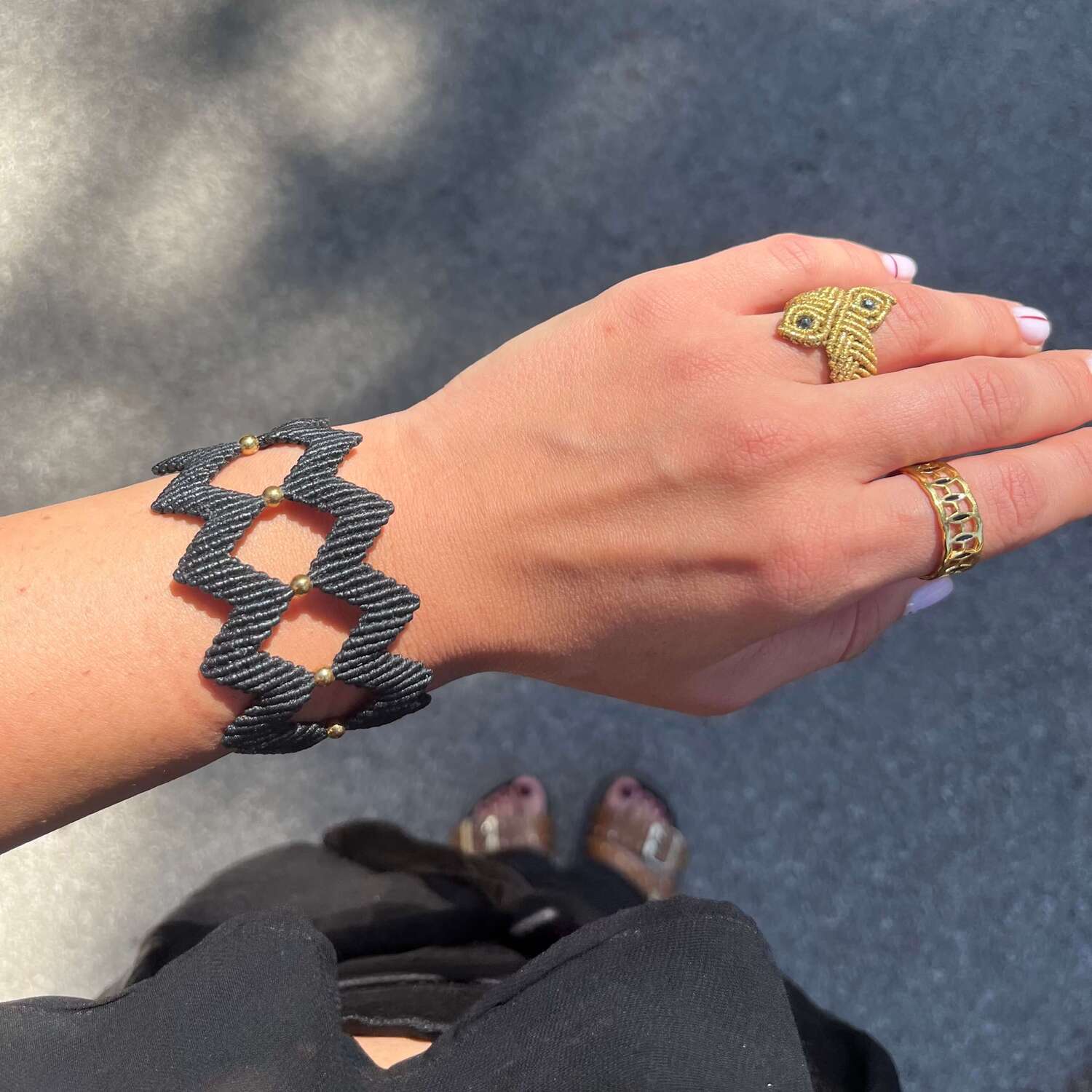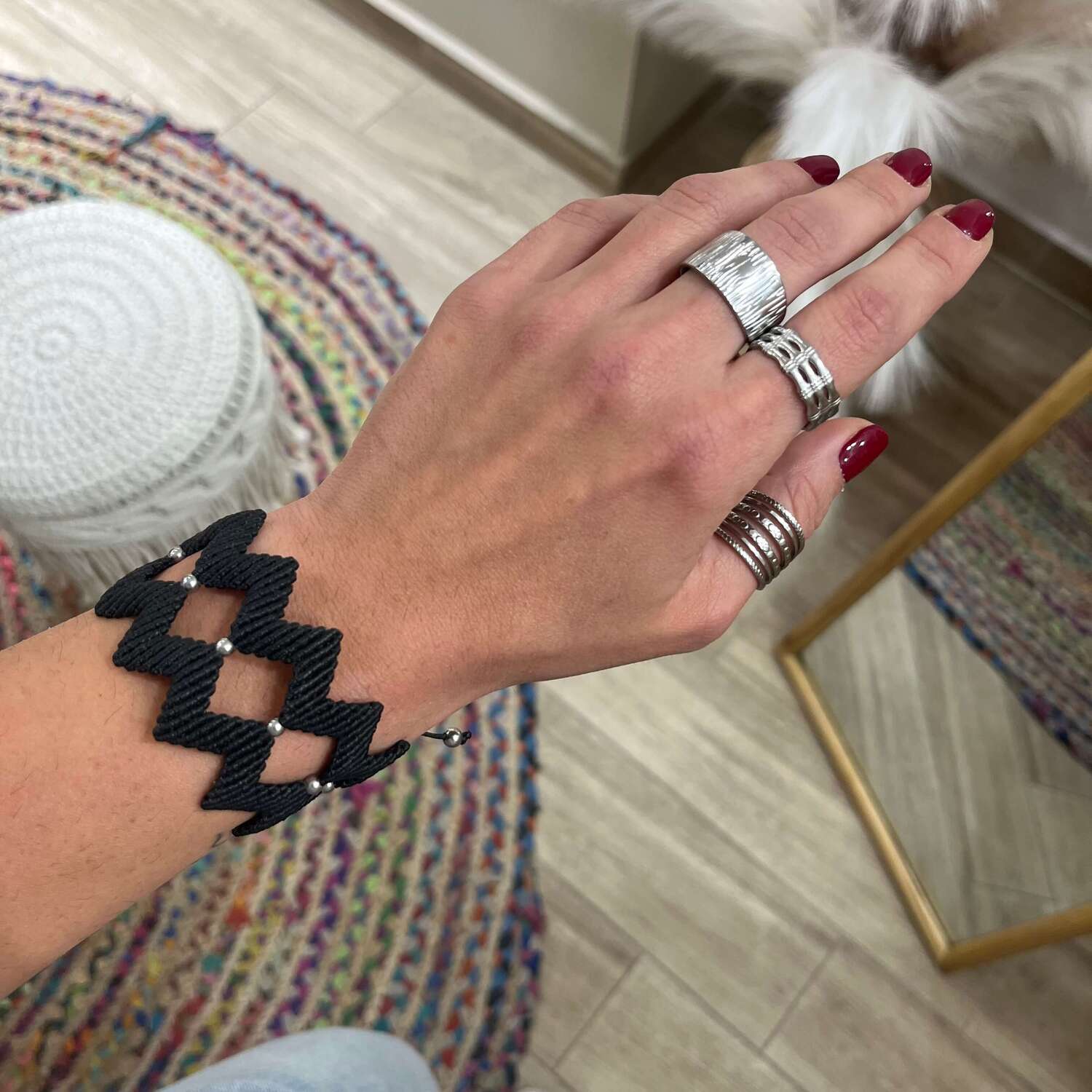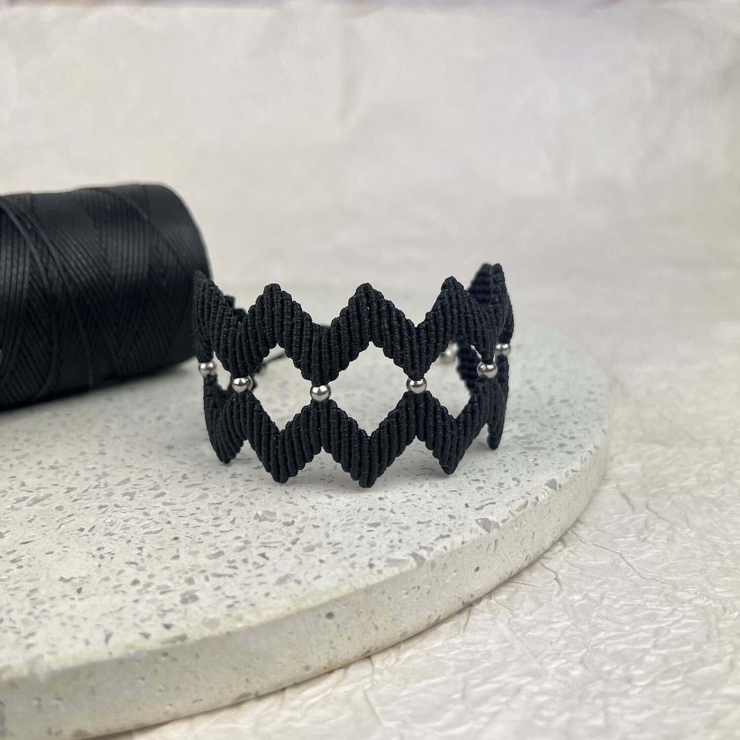 Αναδείξτε το στυλ σας με αυτό το εντυπωσιακό χειροποίητο μακραμέ βραχιόλι σε γεωμετρικό σχήμα zic zac. Πλεγμένο με υψηλής ποιότητας κερωμένο νήμα στο χρώμα της επιλογής σου. Διαθέτει ατάλινες χάντρες που προσθέτουν λάμψη και χαρακτήρα.