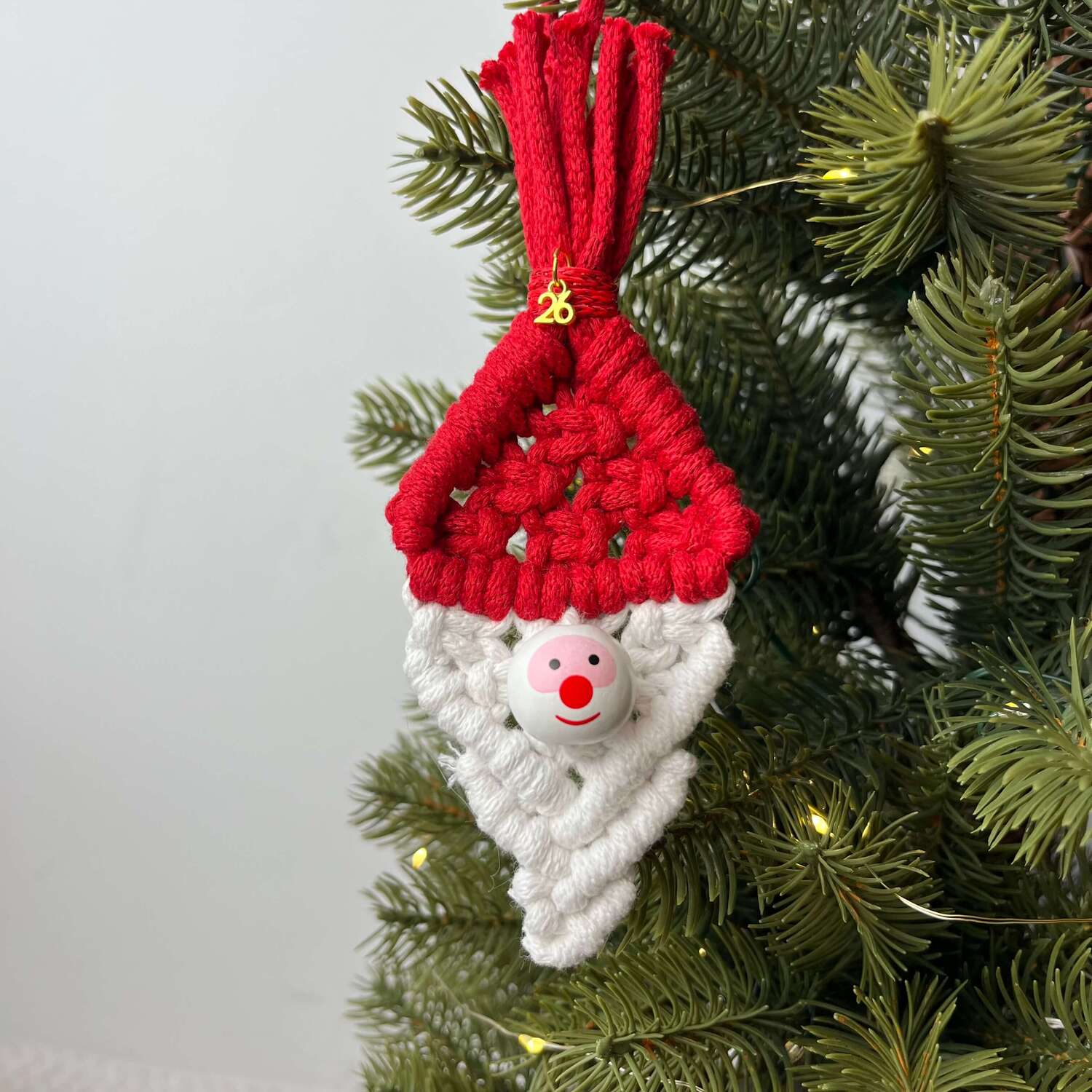 Χειροποίητο στολίδι-γούρι Αγιοβασιλάκι , πλεγμένο με την τεχνική του μακραμέ και μεταλλικό χρυσό στοιχείο 2026.