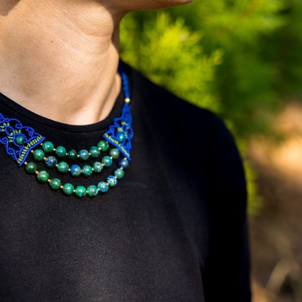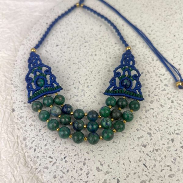 Μακραμέ Κολιέ Tribal Αζουρίτη